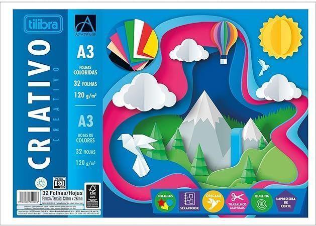 O Caderno Colado Criativo A3 Academie 32 Folhas possui 32 folhas divididas em 8 cores. Com papel resistente e ideal para o dia a dia na escola em atividades que desenvolvam a imaginacao e a criatividade como recortes, colagens, desenhos e dobraduras.