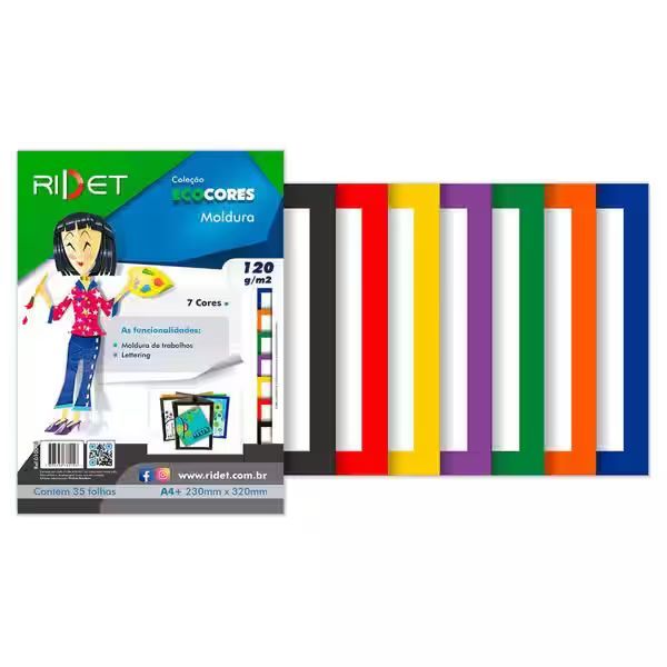 Bloco ecocores moldura 110g 230x320mm 35fls 7 cores