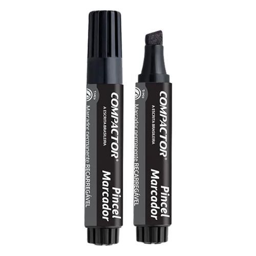 Nossos Pinceis Marcadores preto sao perfeitos para cartazes com letras grandes e visiveis a distancia. A tinta permanente de alta cobertura garante resultados profissionais em diversas superficies. As pontas chanfradas permitem tracos de diferentes espessuras (4 mm a 8 mm), e a recarga facilita o uso. Disponiveis em preto, azul, vermelho e verde, sao ideais para comunicacao eficaz e impactante.